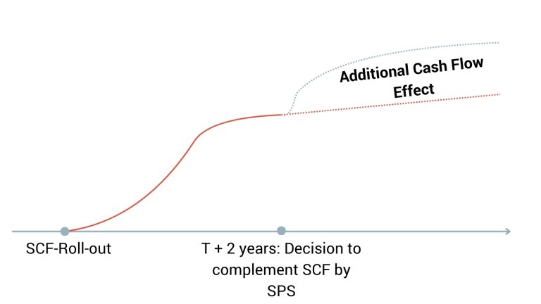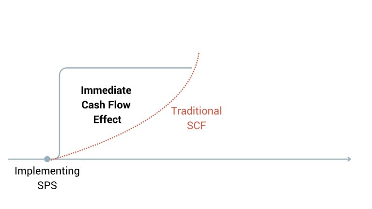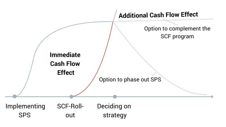 SPS Solution: SPS can be used as an addition to a Supply Chain Finance program. It allows you to generate liquidity from suppliers who refuse to participate in the SCF program or who offer attractive discounts for fast payment. Additionally, the SPS program allows for further extension of payment terms with strategic suppliers already participating in the SCF program, significantly enhancing the overall cash flow effects and providing you with multiple financial benefits. The combination of both solutions provides you with the flexibility to manage your cash flow more efficiently and achieve effective working capital management.